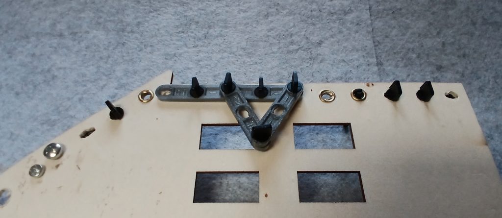 - Mit „mini-Mint“ kommen elektrifizierte Holz-Lasercut-Sets. Mit etwas Glűck lassen sich diese so bearbeiten, daß sie mit fischertechnik nach untenstehender Methode kombinierbar sind. Holzbrettchen lassen sich mit ft-Riegeln, M4-Schrauben, Kabelbindern, Metallősen und ft-Achsen, Draht, Fliesenkreuzen u.s.w. mit fischertechnik-Teilen verbinden.